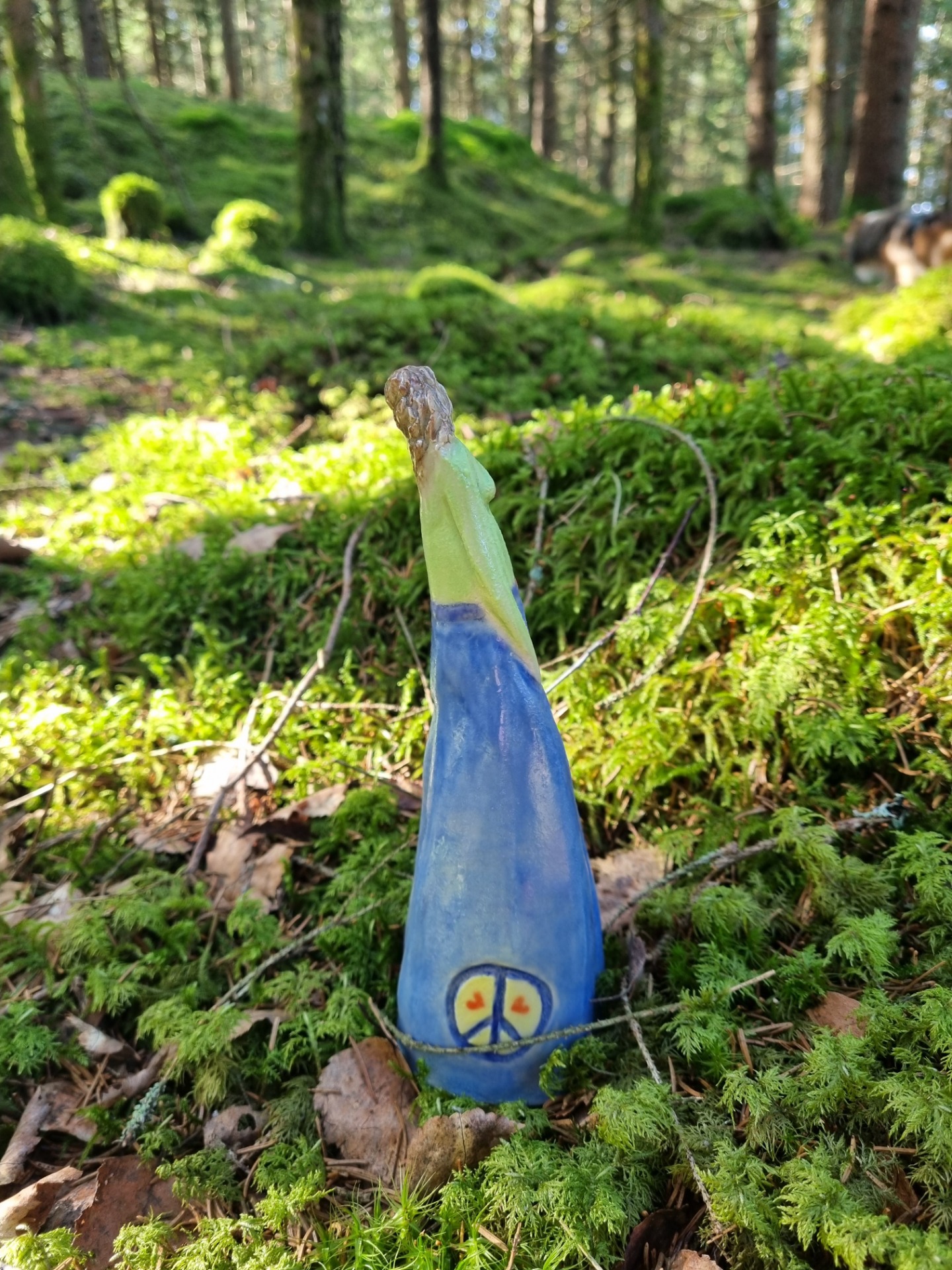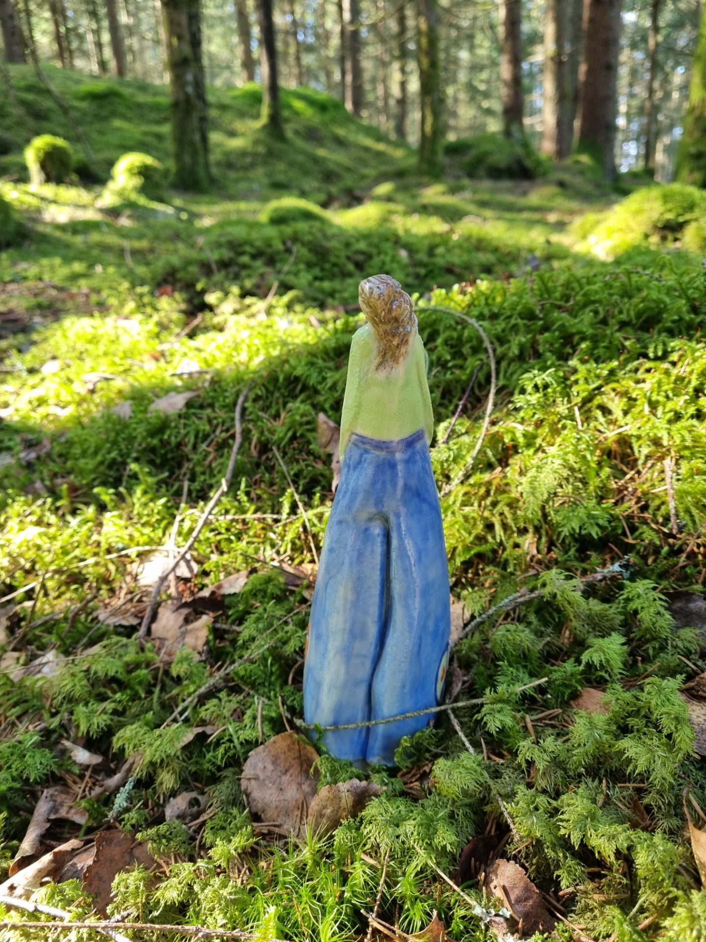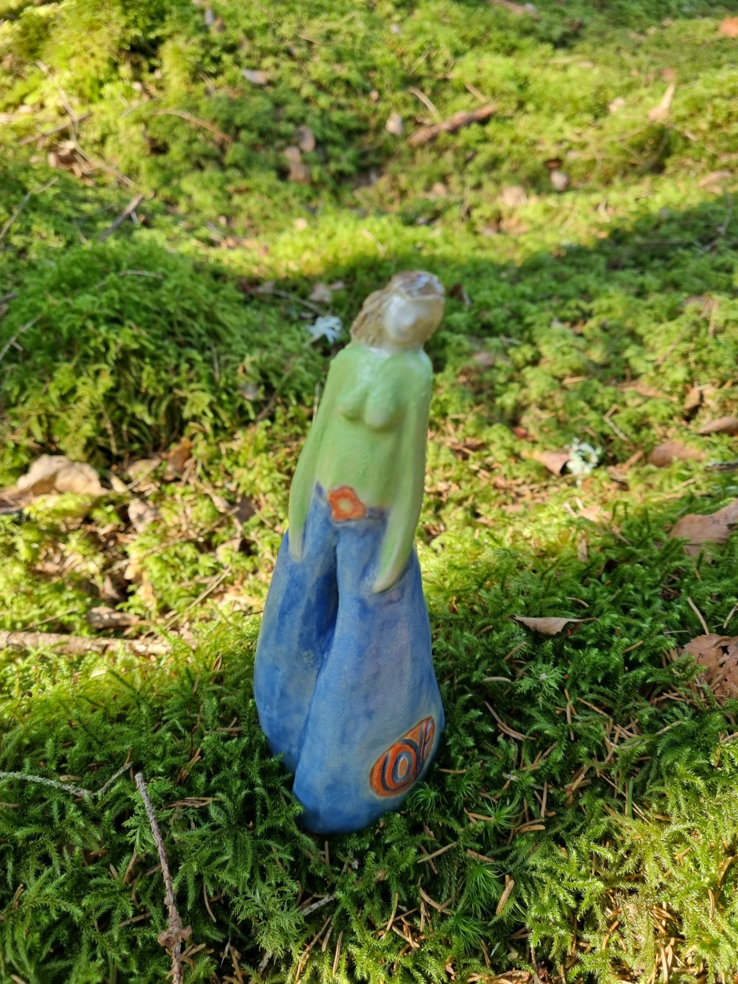 Underglasyr i blå, grön och orange. Blå färgs betydelse är bland annat tro på din egna förmåga,trygghet, övervinna oro, tvivel och rädslor. Grön färgs betydelse är bland annat kärlek, medkänsla, balans och hopp. Orange symboliserar bland annat värme och energi.